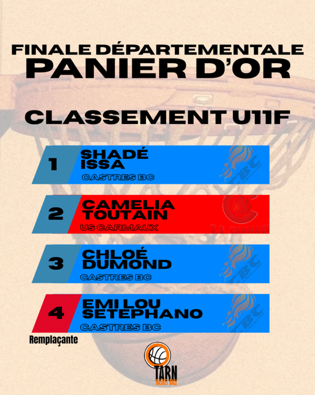 La finale départementale du Panier d’Or s'est déroulée ce Dimanche 9 Février à Lisle-sur-Tarn où les joueuses et joueurs se sont donnés rendez-vous pour connaitre les qualifiés pour les finales régionales (Dimanche 30 Mars à Muret).